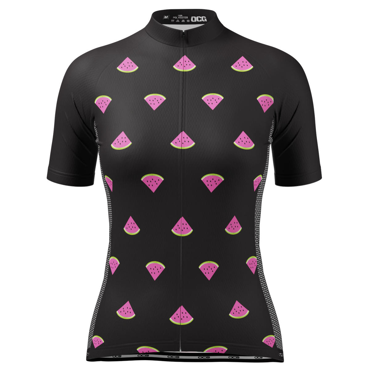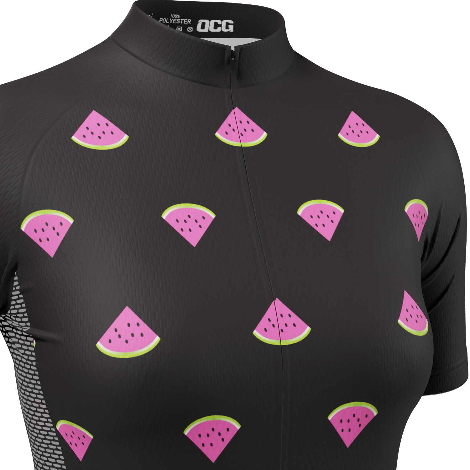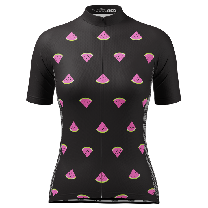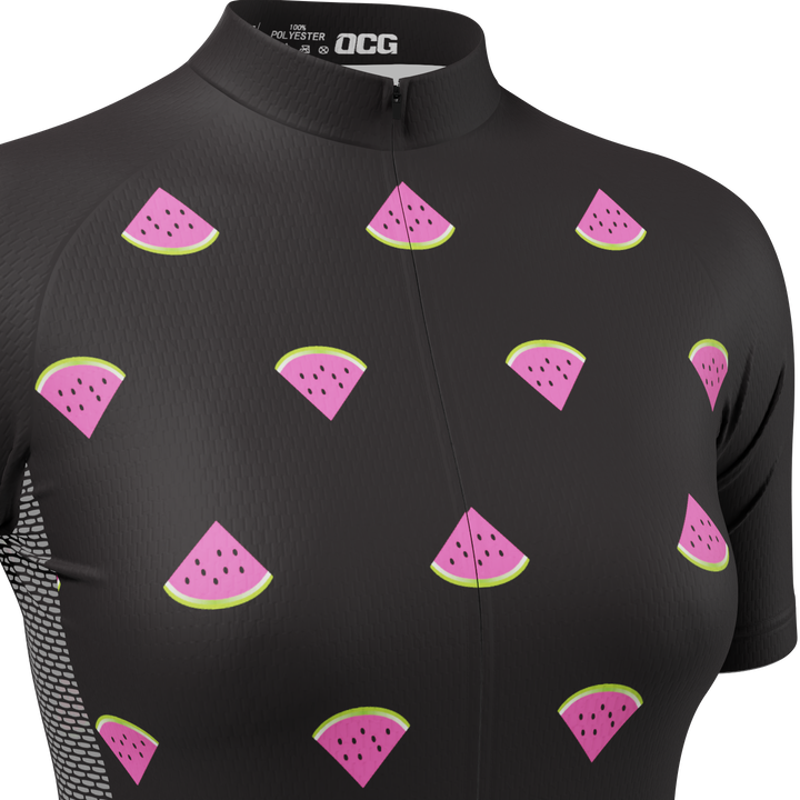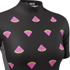 OCG and OCG Originals have come together to bring the Women's Watermelon Black Short Sleeve Cycling Jersey so you can roll up to your next ride in style and feel the comfort of a female cut jersey.