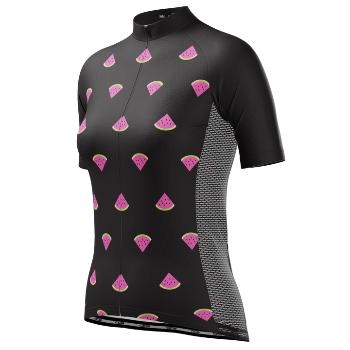 Women's Watermelon Black Short Sleeve Cycling Jersey Details