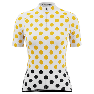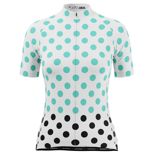 Women's White Polka Dot Short Sleeve Cycling Jersey Features