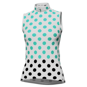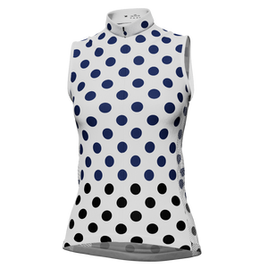 Women's White Polka Dot Sleeveless Cycling Jersey Details