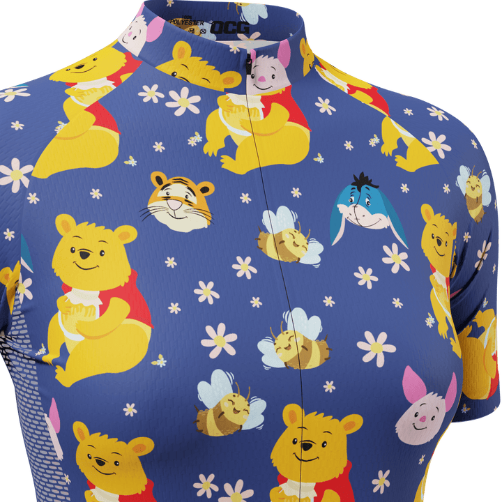 OCG and OCG Originals have come together to bring the Women's Winnie The Pooh & Bees Short Sleeve Cycling Jersey so you can roll up to your next ride in style and feel the comfort of a female cut jersey.
